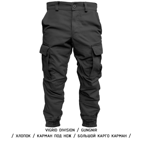 Хлопковые штаны с карманом под нож "Gungnir" с манжетами черные