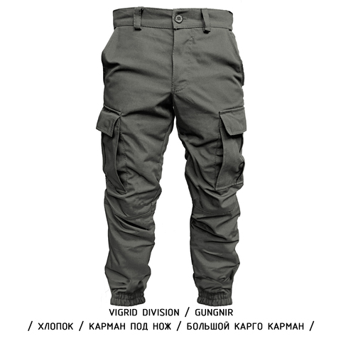 Хлопковые штаны с карманом под нож "Gungnir" с манжетами серый хаки