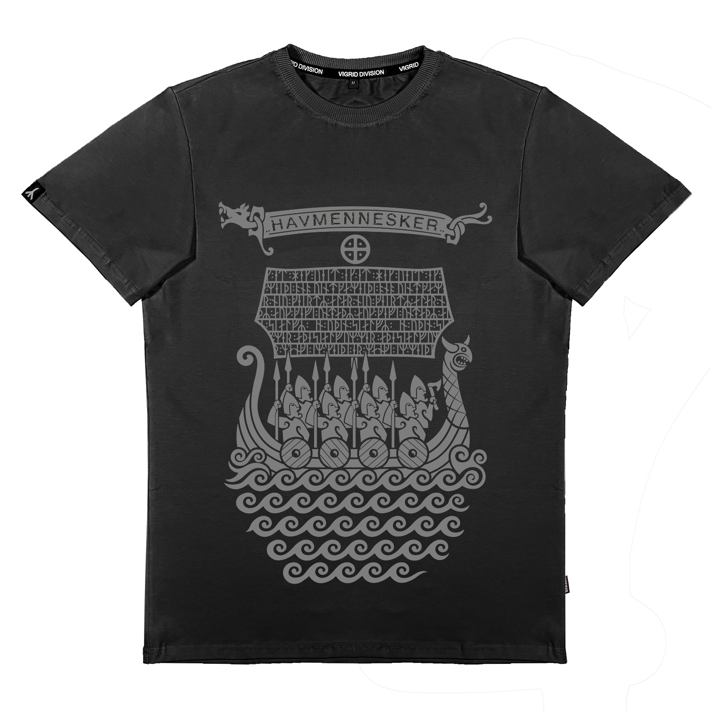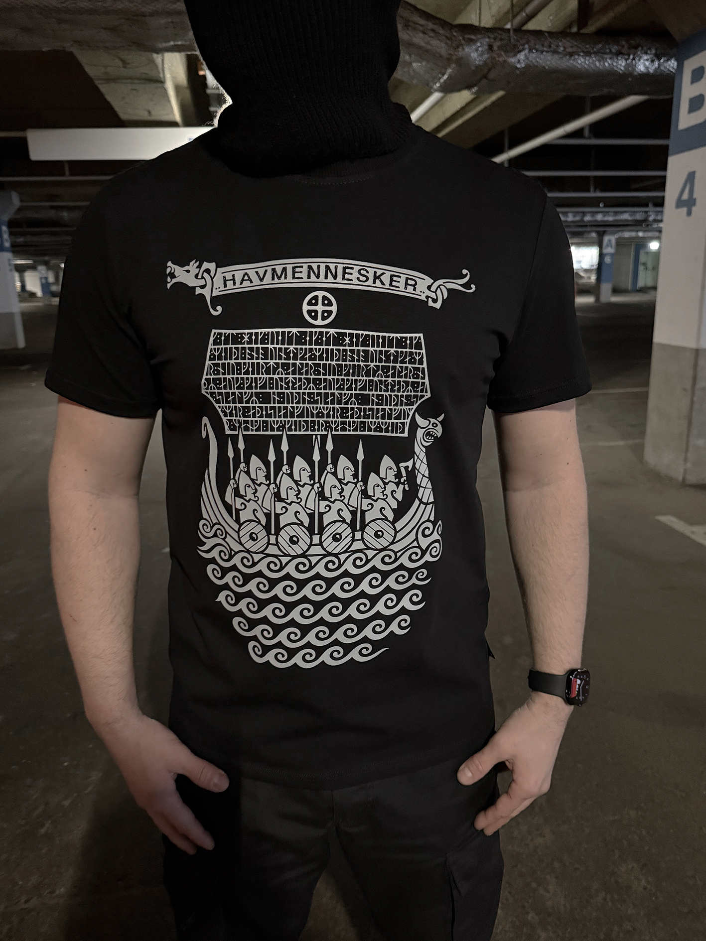 Принт "Дети моря" это стилистическое продолжение принта "STONE", выполненное в стиле древних рисунков, а руны использовались с рунического камня из Дании.