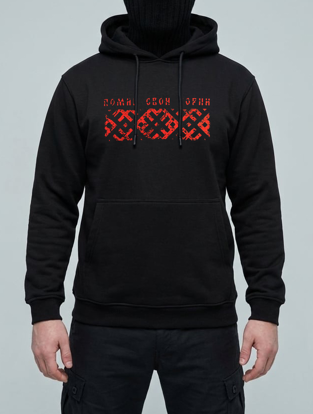 На принте изображена часть традиционной славянской вышивки, которая используется по сей день и является культурным наследием восточных славян.