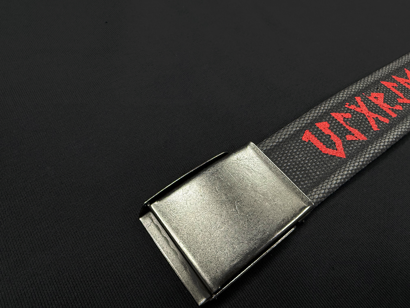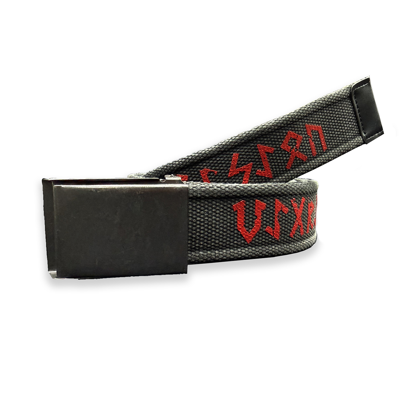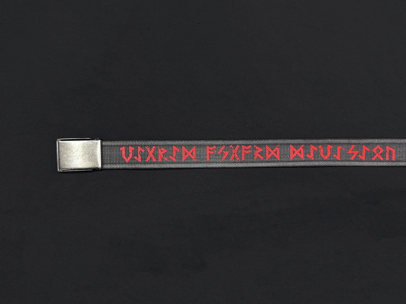 Хлопковый плотный ремень с зажимной пряжкой.Руны выполнены методом шелкографии.Надпись это стилизация под скандинавские руны, и гласят - VIGRID ASGARD DIVISION