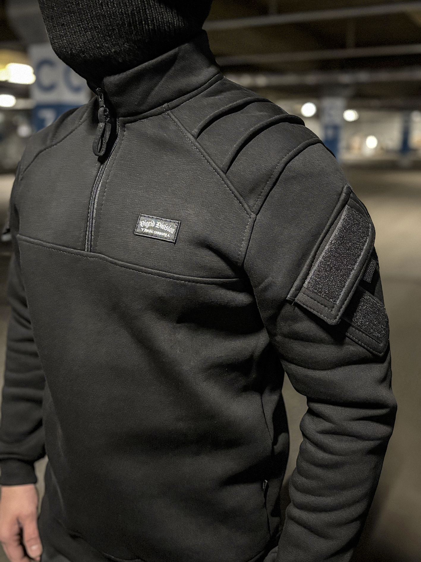 Мужская уникальная толстовка VIGRID DIVISION с молнией. Изделие выполнено из фирменного футера с диагональным плетением, у которого не вытягиваются локти, или любые иные части.