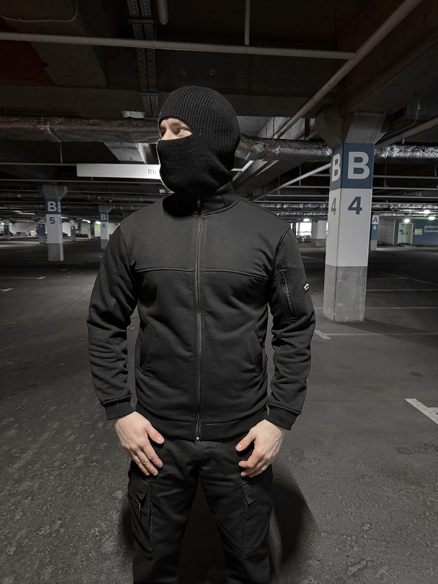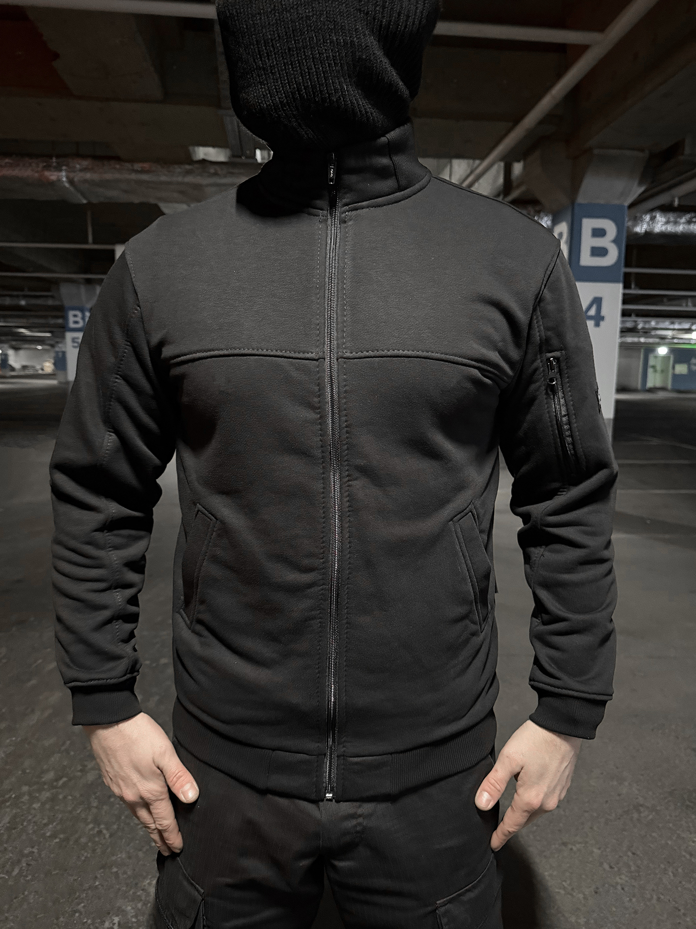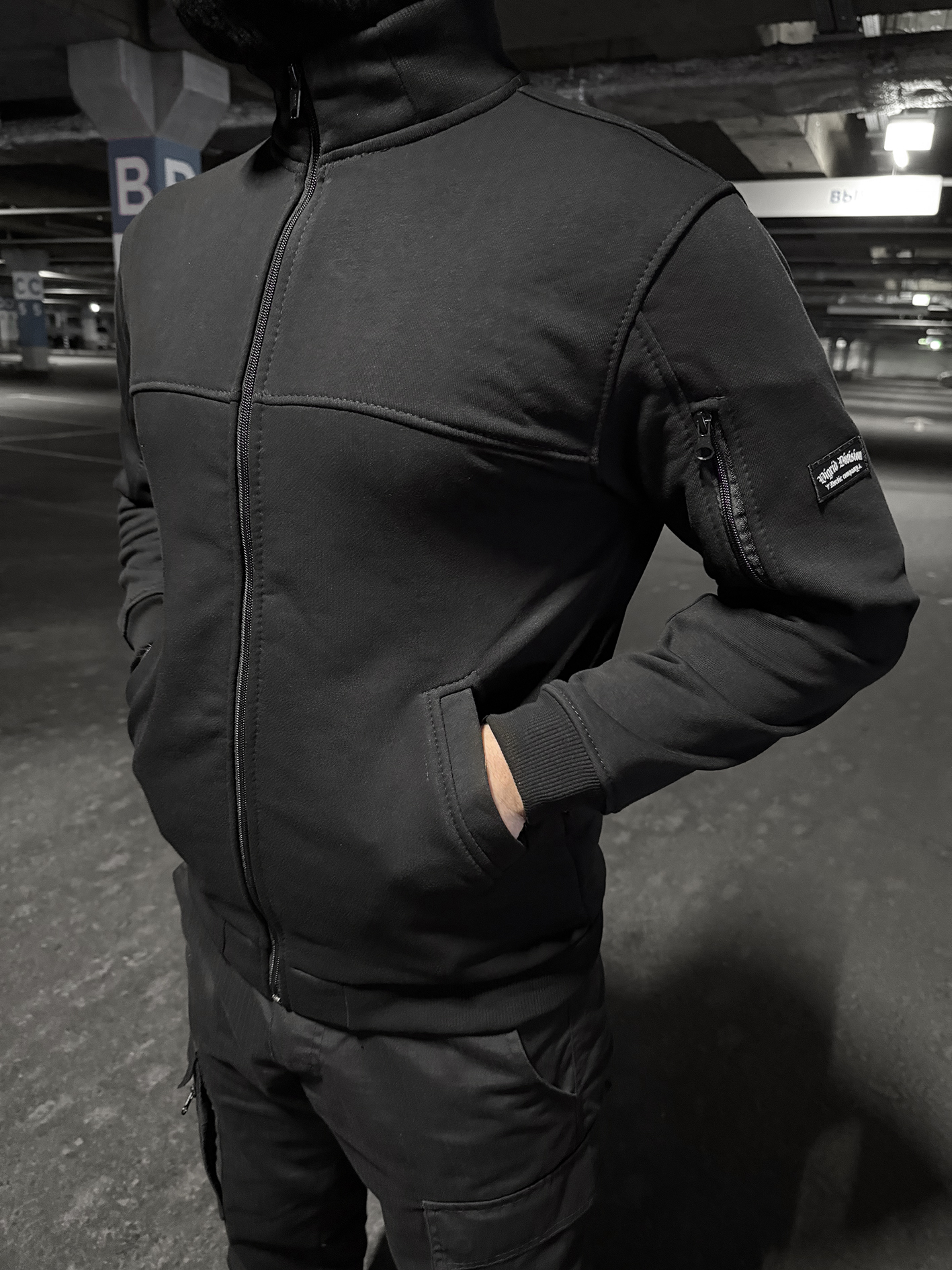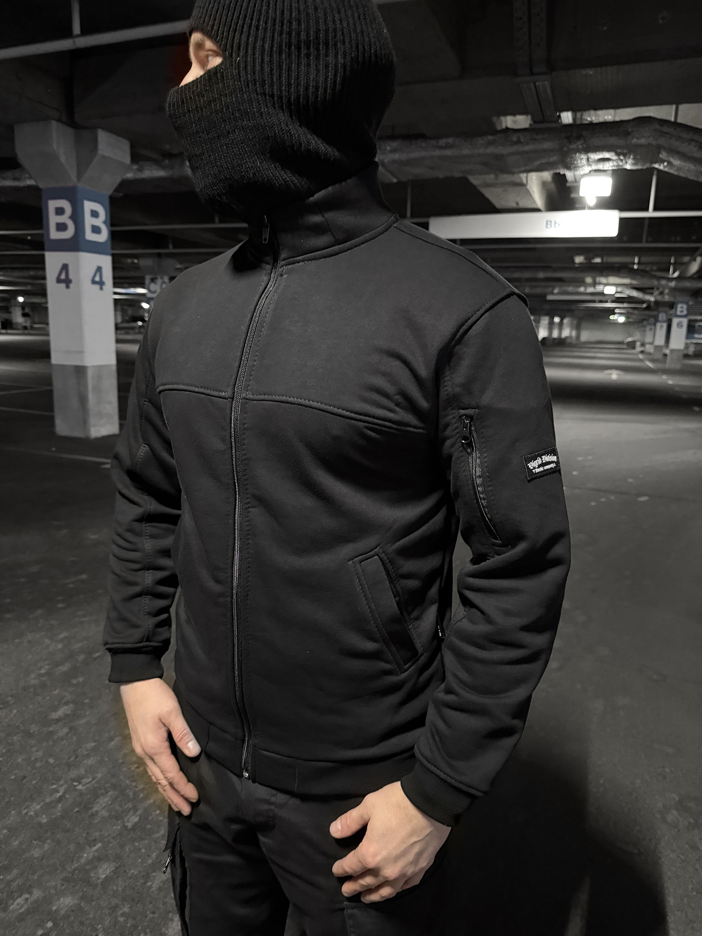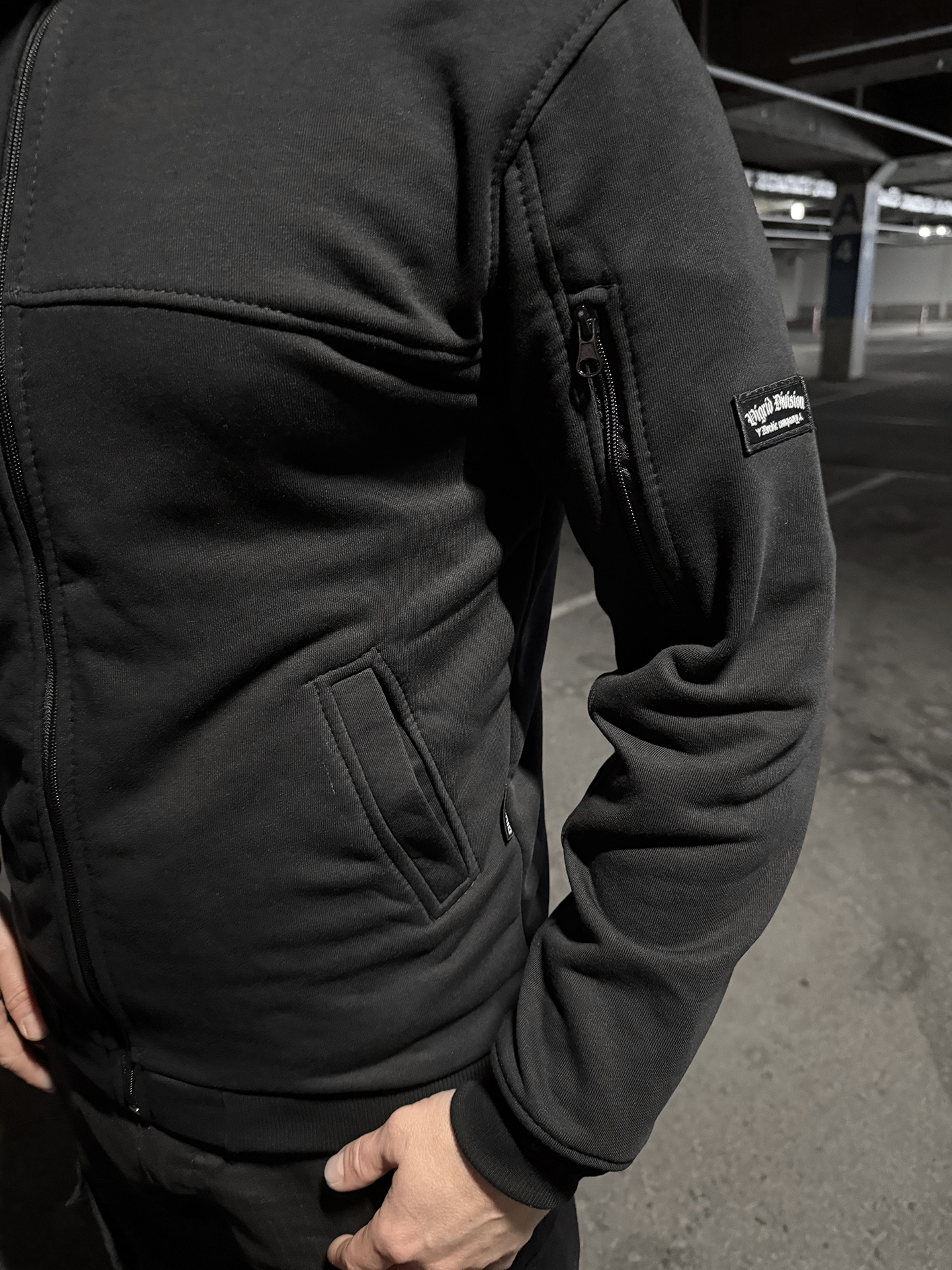 Мужская уникальная толстовка на молнии с капюшоном VIGRID DIVISION. Изделие выполнено из фирменного футера с диагональным плетением, у которого не вытягиваются локти, или любые иные части.