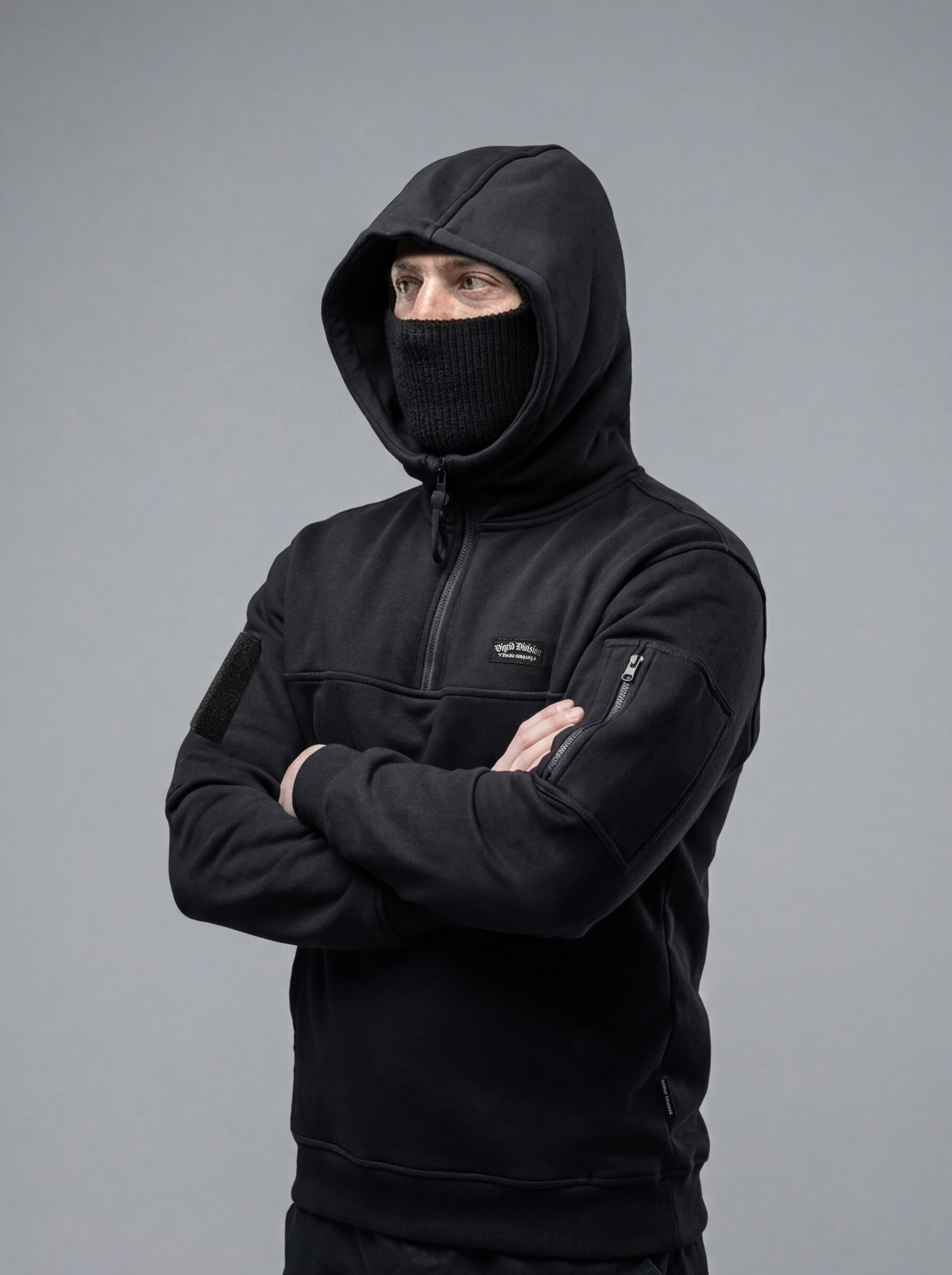 Мужская уникальная толстовка VIGRID DIVISION. Изделие выполнено из фирменного футера, у которого не вытягиваются локти, или любые иные части.