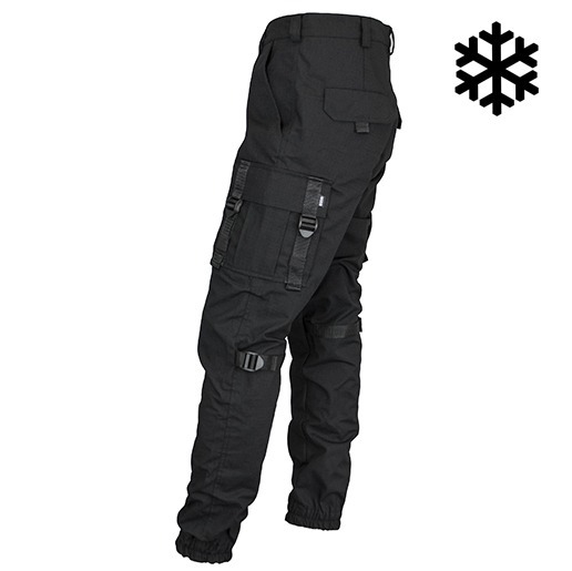 На штанах установлены дополнительные утяжки на стропах, создающие комфортную посадку вне зависимости от телосложения, а так же штаны имеют манжеты для удобства носки.